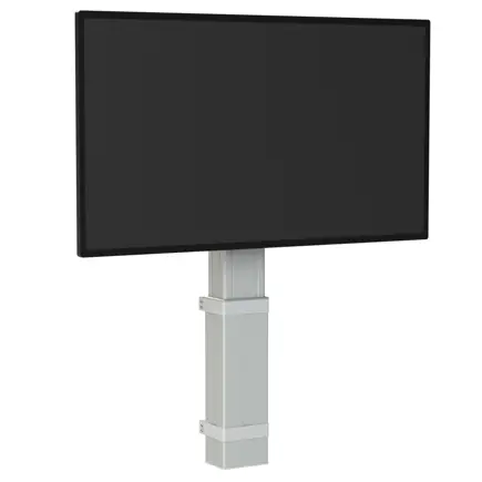 Single column wall to floor mounted electric screen lift.