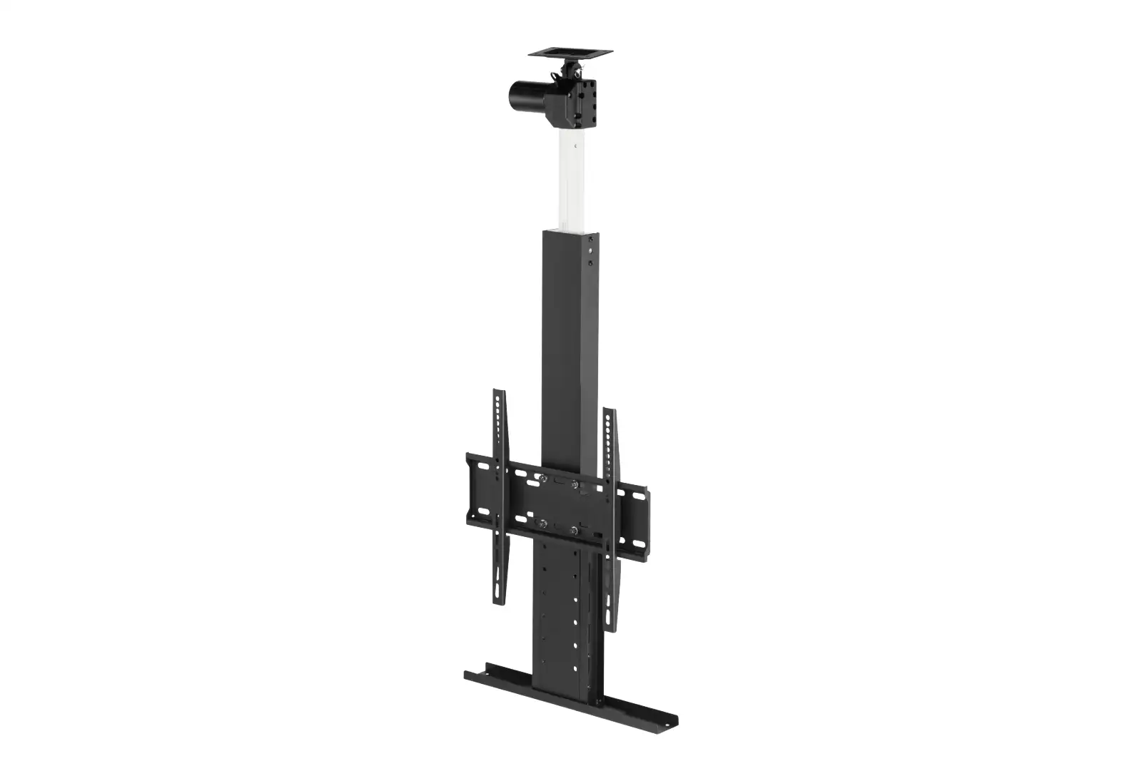 A high quality electric linear motor allows this TV lift work both as a ceiling mounted, and floor mounted lift. When used as a ceiling mounted lift, the design allows the whole TV to be hidden in the ceiling space. The remote control provides convenient operation at the touch of a button.