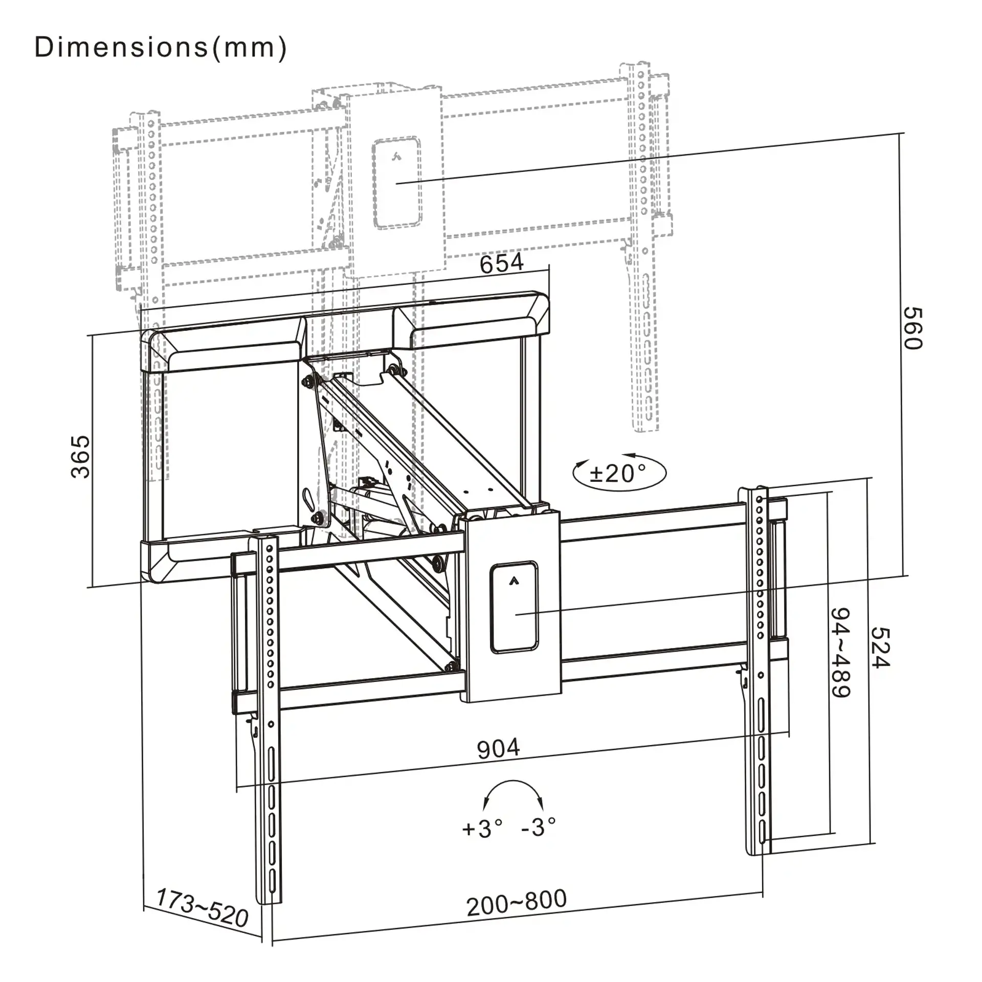 ±20° swivel with auto return when raising