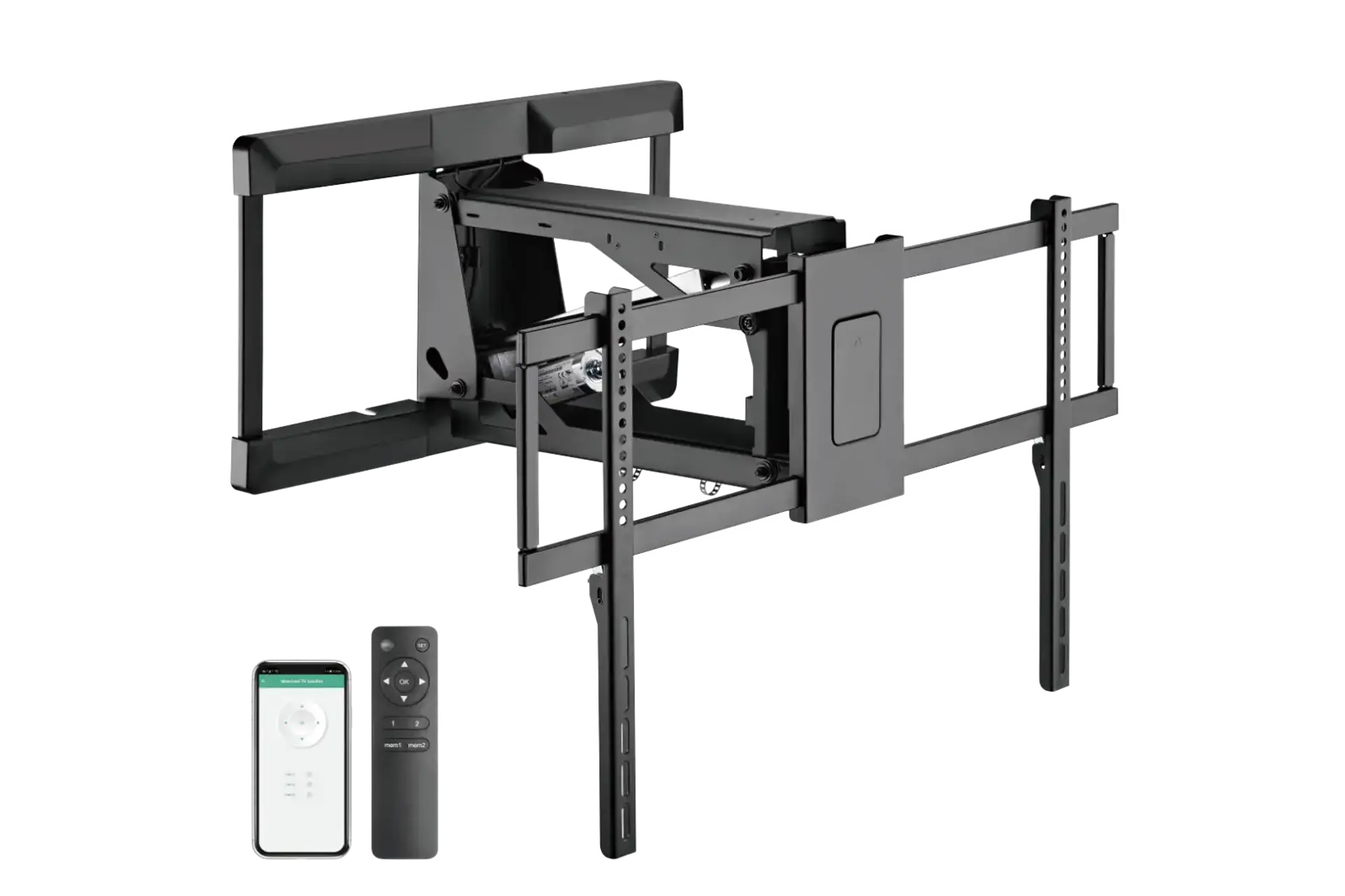 Enjoy the convenience of smart voice and app control with the MFB-R-L Motorised Heavy-Duty Mantel TV Mount. It allows you to easily watch a TV mounted above a fireplace with a sturdy design that keeps your TV stable. This mount offers a stylish way to enjoy your favourite shows from the comfort of your couch.