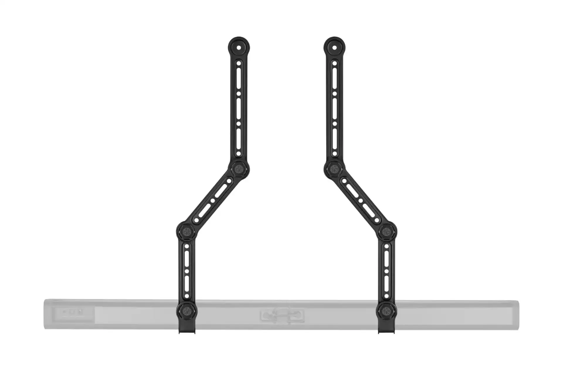 The extra-long reach of the 3 bracket arms allows the bracket to be used on TVs up to 90" and the sturdy design permits the use of soundbars that weigh up to 15kg. Anti-fall hooks firmly secure the soundbar, so you have peace of mind.