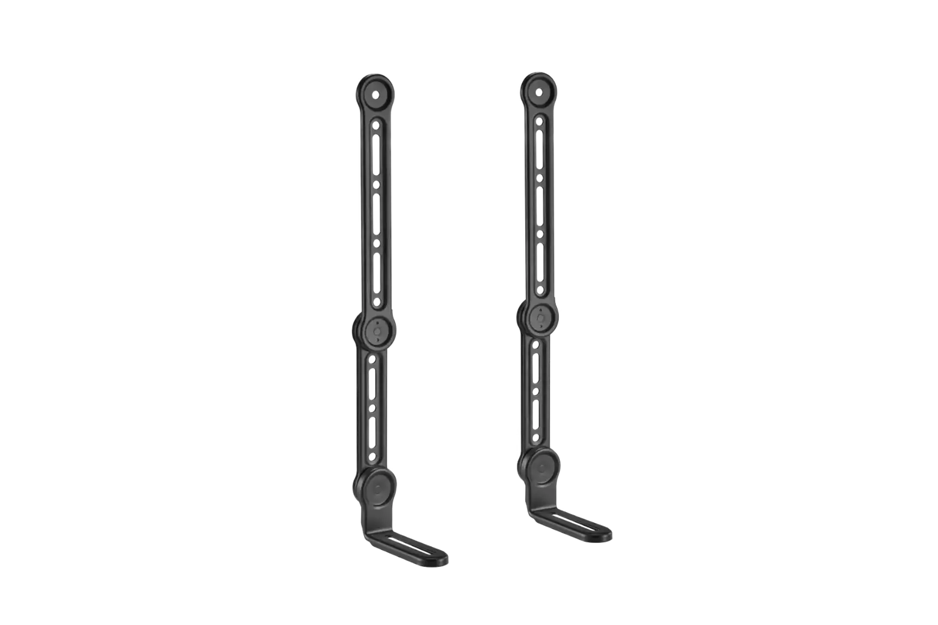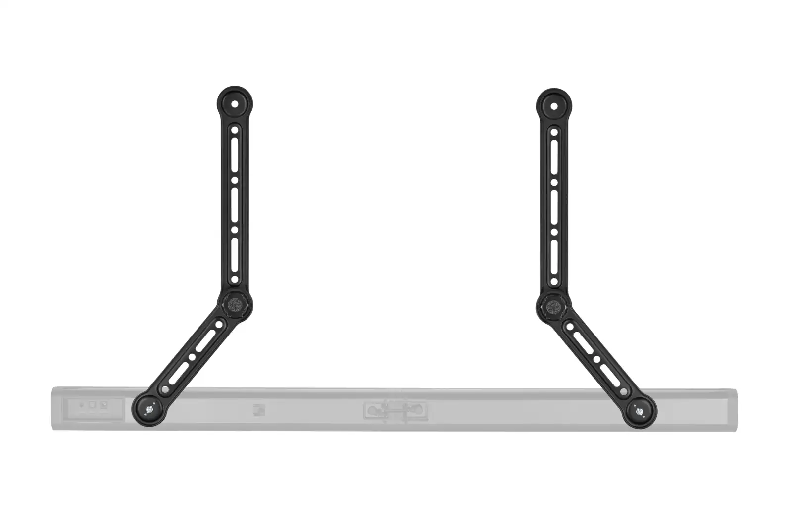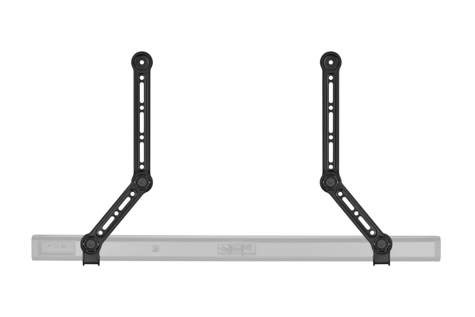 The reach of the 2 bracket arms allows the bracket to be used on TVs up to 49" and the sturdy design permits the use of soundbars that weigh up to 15kg. Anti-fall hooks firmly secure the soundbar, so you have peace of mind.
