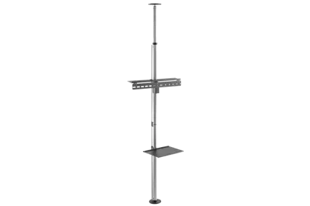 Sleek, Aluminium TV mount for either permanent or temporary installation. 360° of swivel and built-in cable management