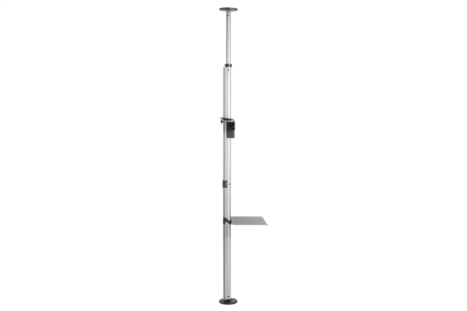 The included, height adjustable media shelf gives allows space for your AV components. The tube has a channel for cable management with retaining clips to keep cables out of site. And the strong design supports TVs up to 30kg and 5kg of media equipment.