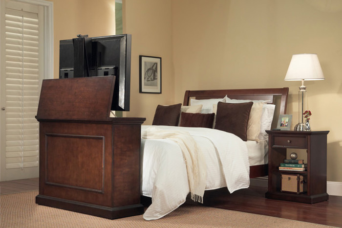 We have gathered some fine examples of built in hidden tv's using a lift mechanism. Have a look at them and hopefully they will inspire you to come up with the perfect idea for your room.