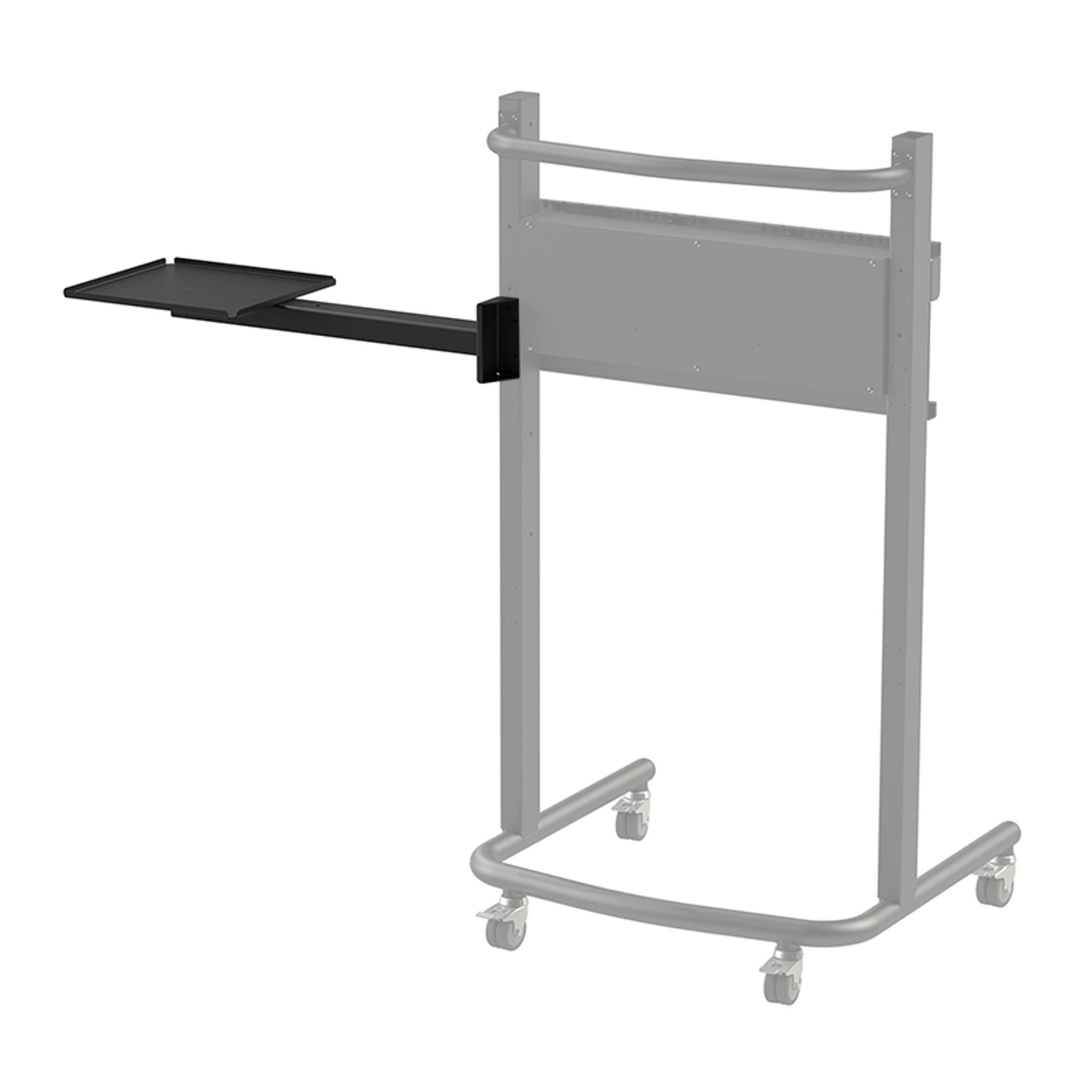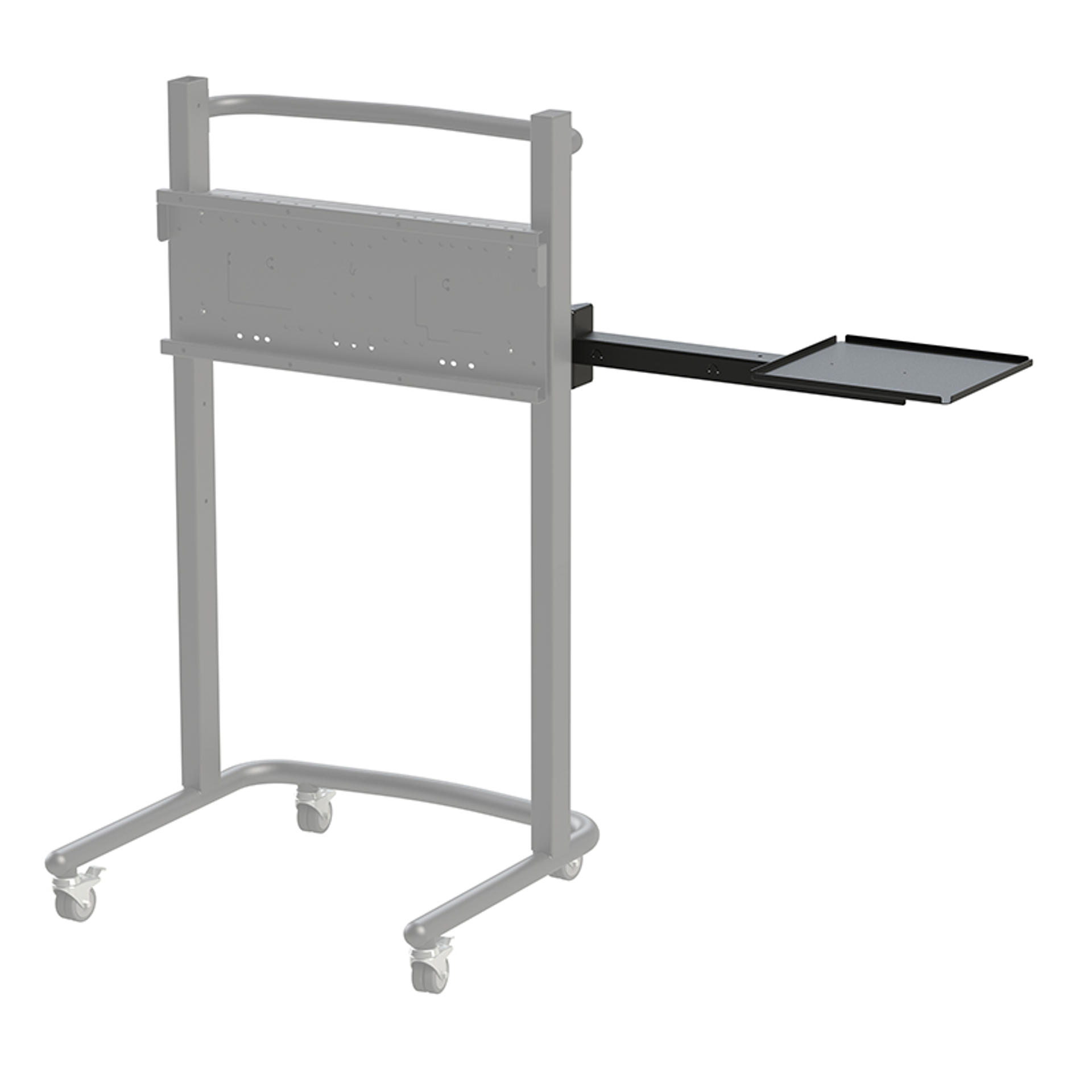 The Loxit 8998 Purpose made laptop shelf holds the laptop in a position convenient to one side of the screen, allowing access to the screen as well as operating the laptop at the same time. May be retro-fitted to an existing Hi-Lo® Screen Lift Mobile TV Lift.