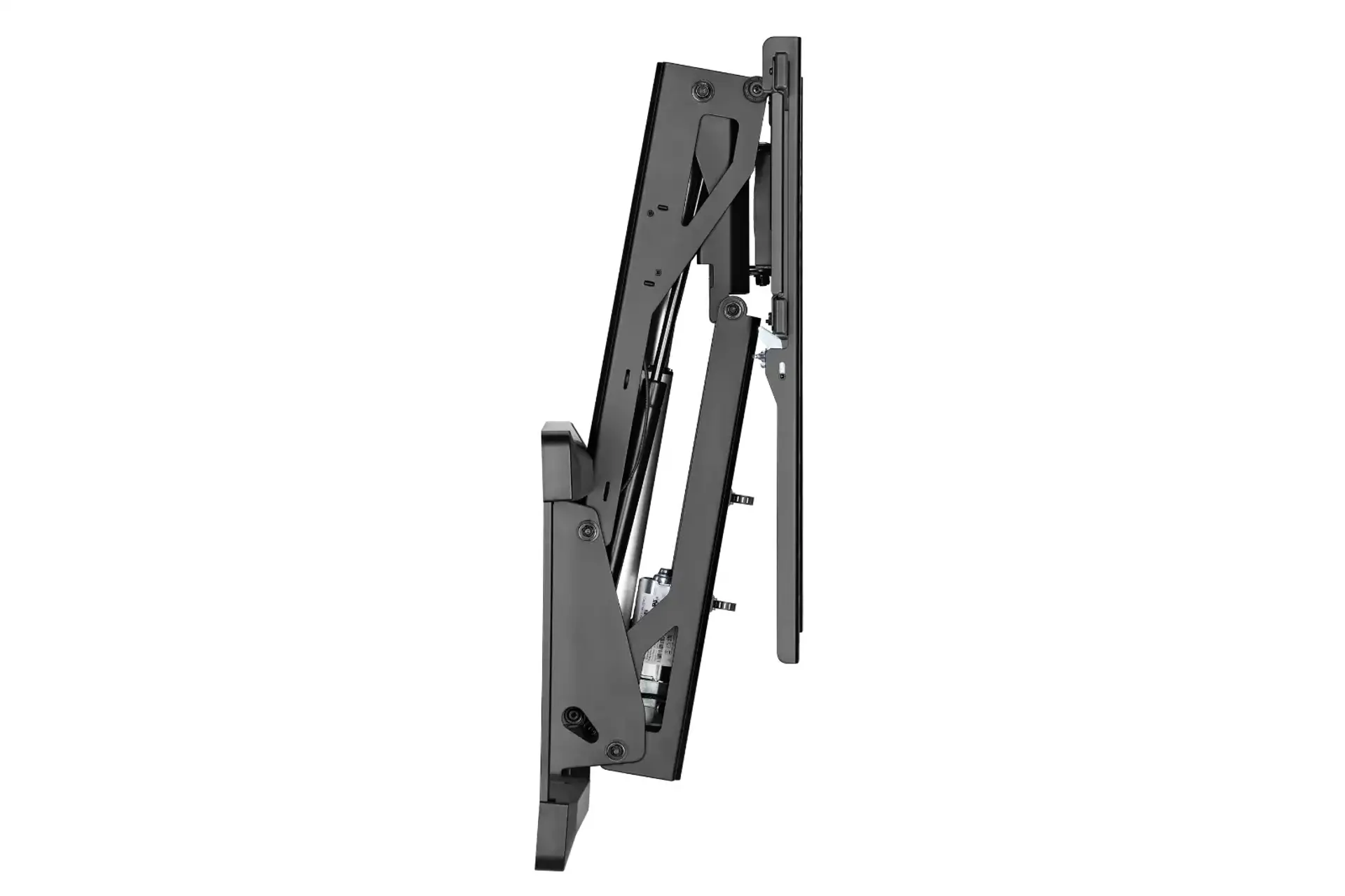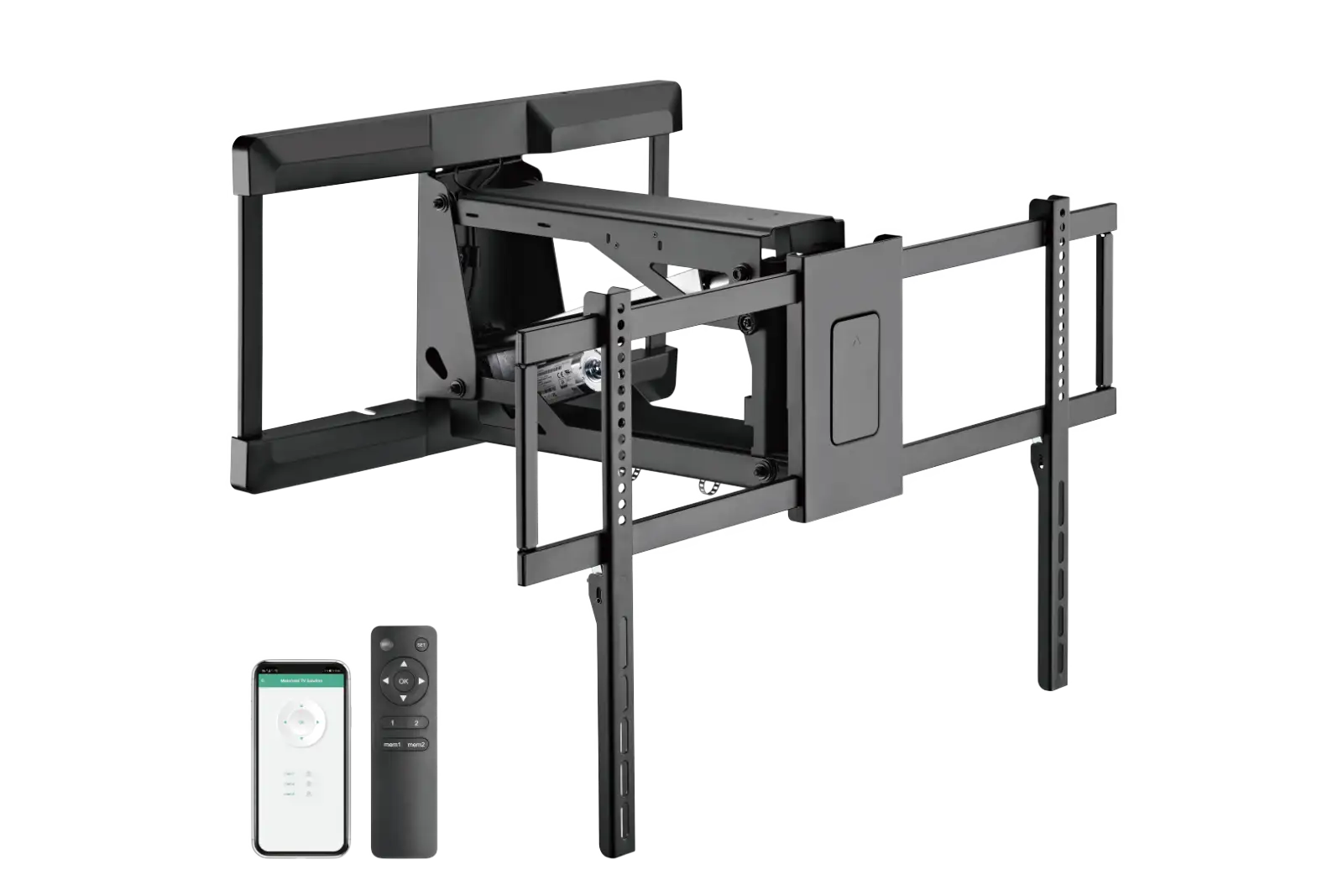 Enjoy the convenience of smart voice and app control with the MFB-R-L Motorised Heavy-Duty Mantel TV Mount. It allows you to easily watch a TV mounted above a fireplace with a sturdy design that keeps your TV stable. This mount offers a stylish way to enjoy your favourite shows from the comfort of your couch.