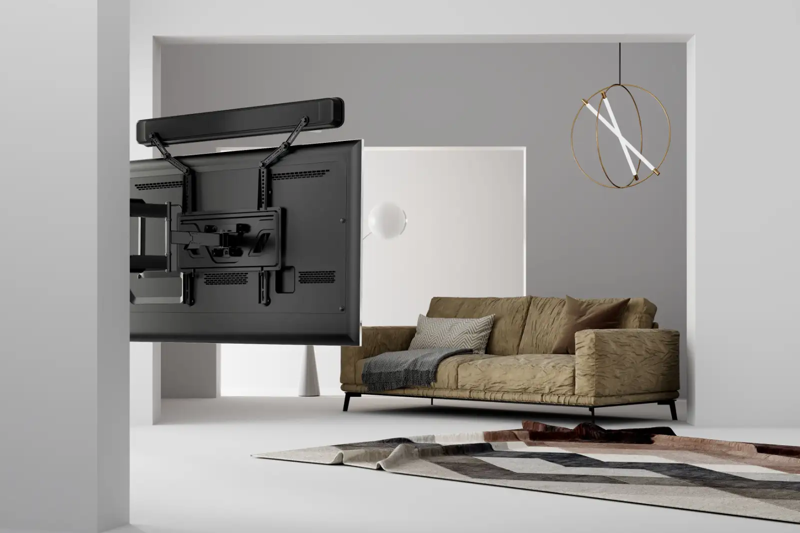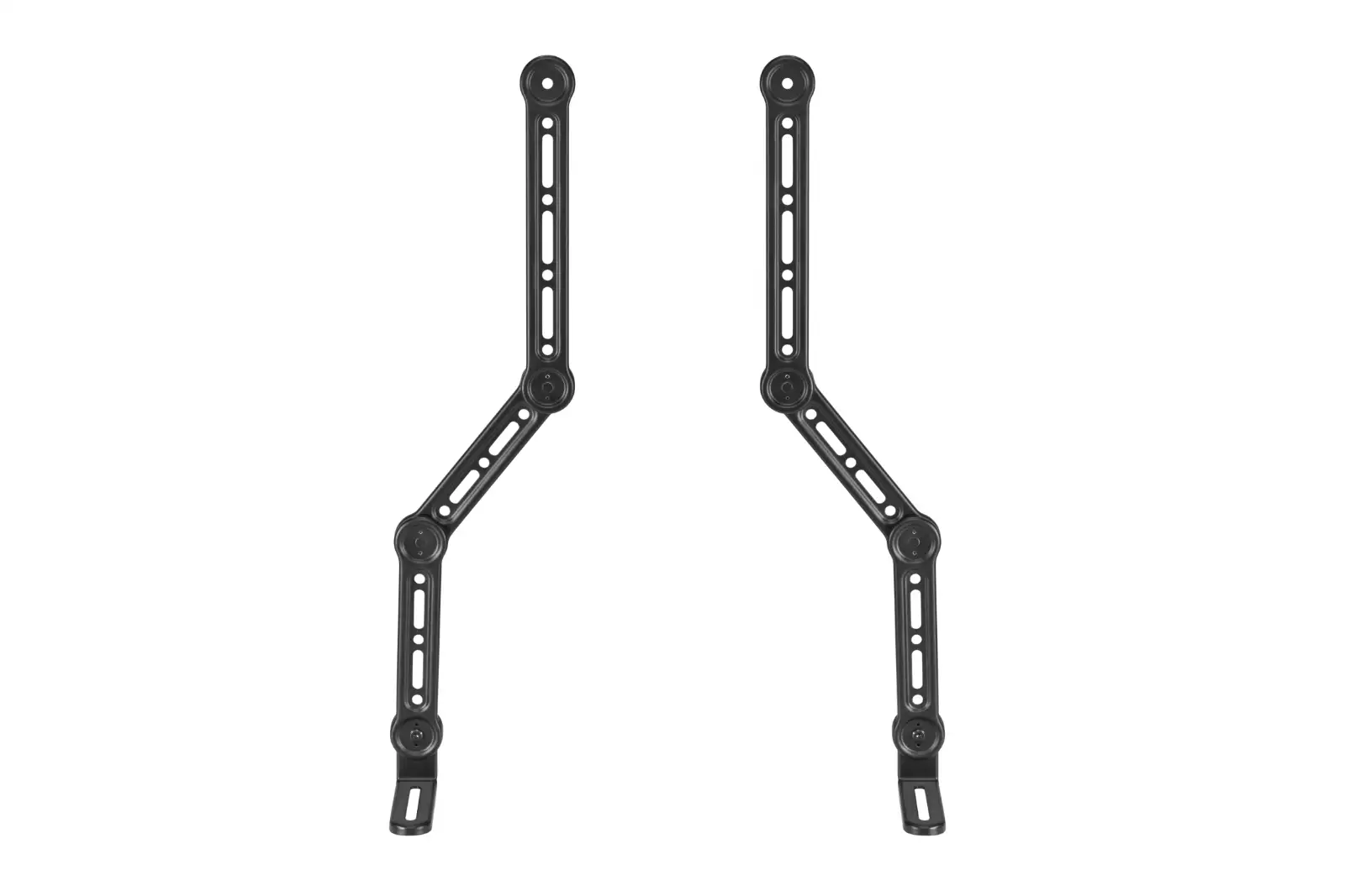 The extra-long reach of the 3 bracket arms allows the bracket to be used on TVs up to 90" and the sturdy design permits the use of soundbars that weigh up to 15kg. Anti-fall hooks firmly secure the soundbar, so you have peace of mind.