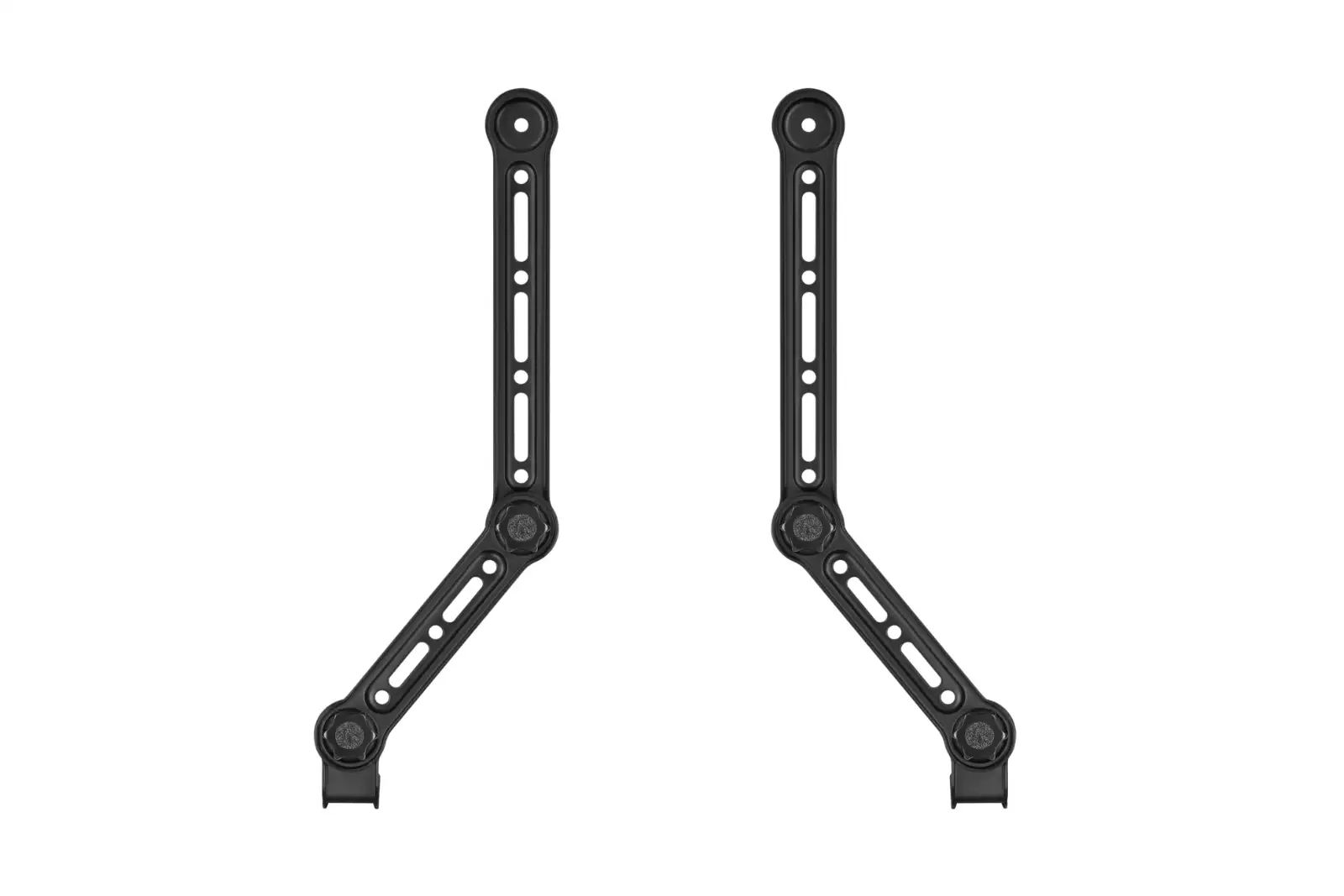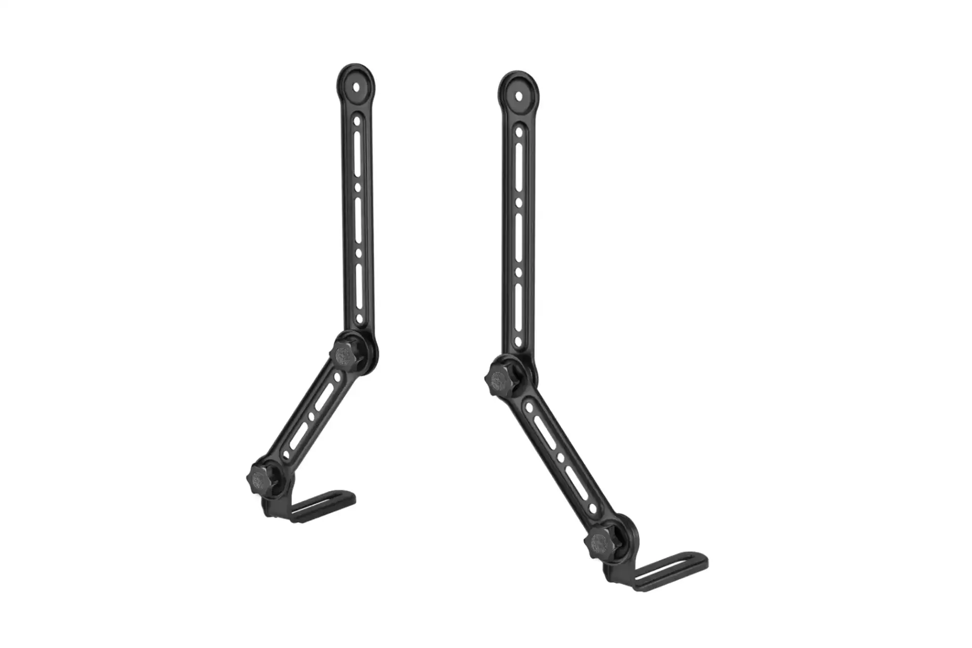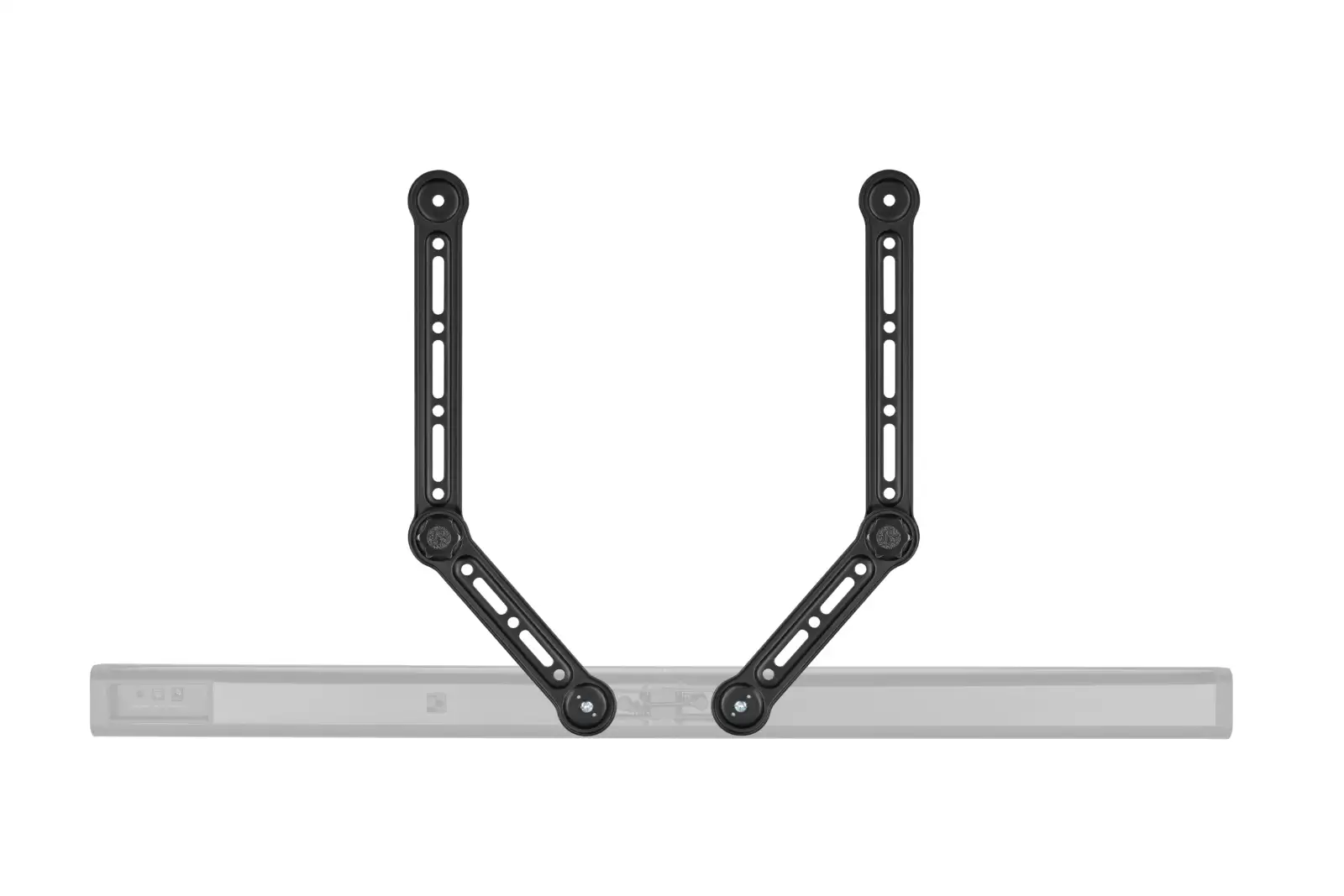 The reach of the 2 bracket arms allows the bracket to be used on TVs up to 49" and the sturdy design permits the use of soundbars that weigh up to 15kg. Anti-fall hooks firmly secure the soundbar, so you have peace of mind.