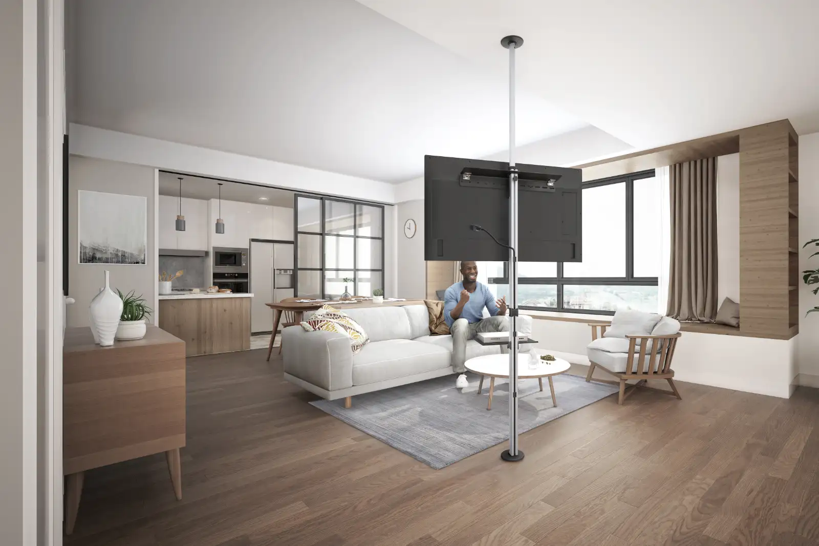 The FTC-S-M is ideal for open plan spaces and in commercial environments. Its sleek design helps it blend into the environment, allowing you to position the TV virtually anywhere. As long as you have a firm floor and solid ceiling, you can position a TV there.