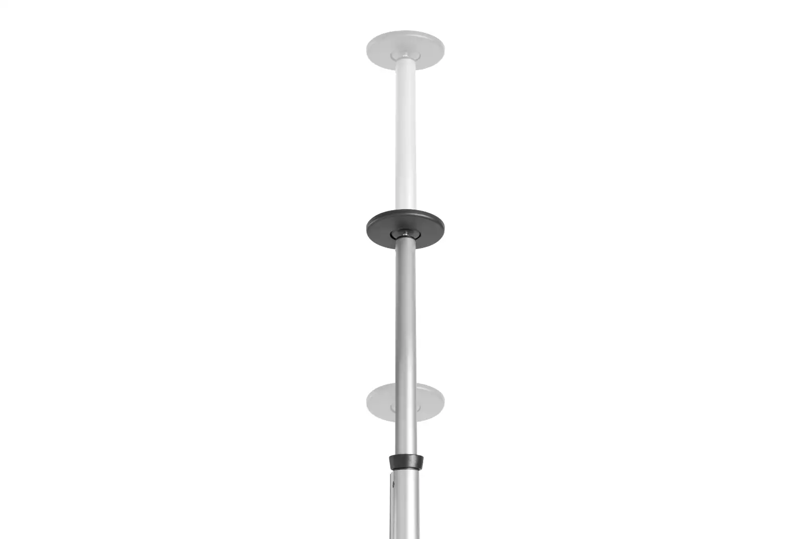 The middle section can swivel ±180° giving your multiple viewing positions which is excellent for open plan spaces. The whole mounting pole can be installed temporarily with a pressure fit, or permanently installed with suitable fixings.
