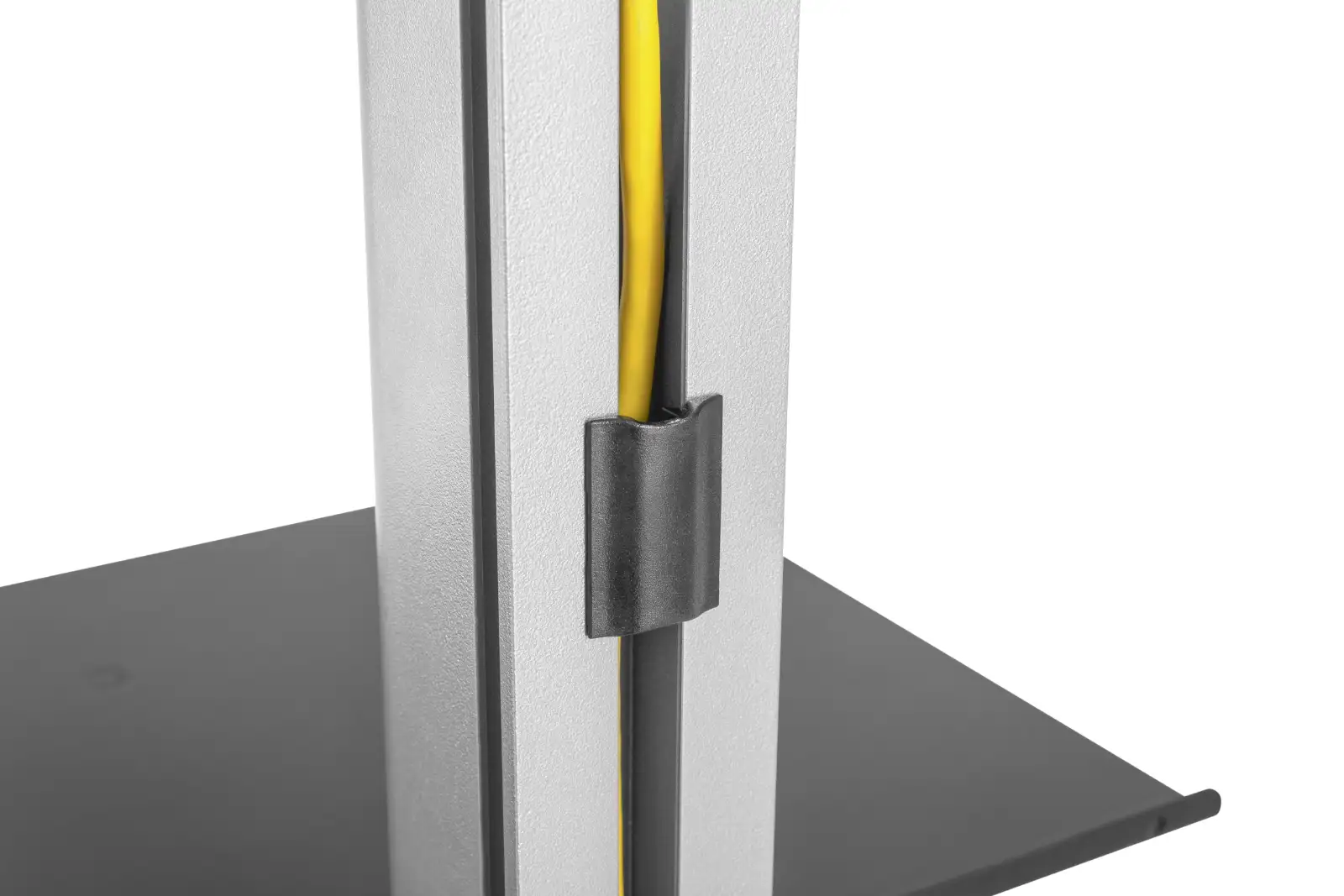 The included, height adjustable media shelf gives allows space for your AV components. The tube has a channel for cable management with retaining clips to keep cables out of site. And the strong design supports TVs up to 30kg and 5kg of media equipment.
